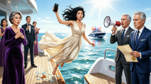A voice, amplified by a military-grade loudspeaker, boomed across the water, drowning out the wind and the confused murmurs of the other yacht guests who were starting to emerge from the cabin.