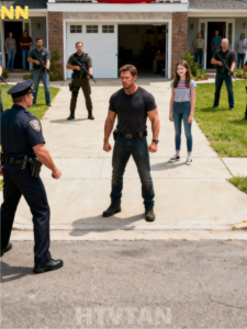 My daughter stepped out from the neighbor’s porch light, face calm, and watched the criminals’ hands go up.