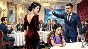 She turned and walked toward the exit, her heels clicking against the floor with measured precision. Around her, the restaurant hummed with life. A couple in their 60s held hands across a candlelit table. A young family with 2 children laughed over shared plates of pasta. A group of friends raised glasses in a toast, their faces bright with the promise of midnight.