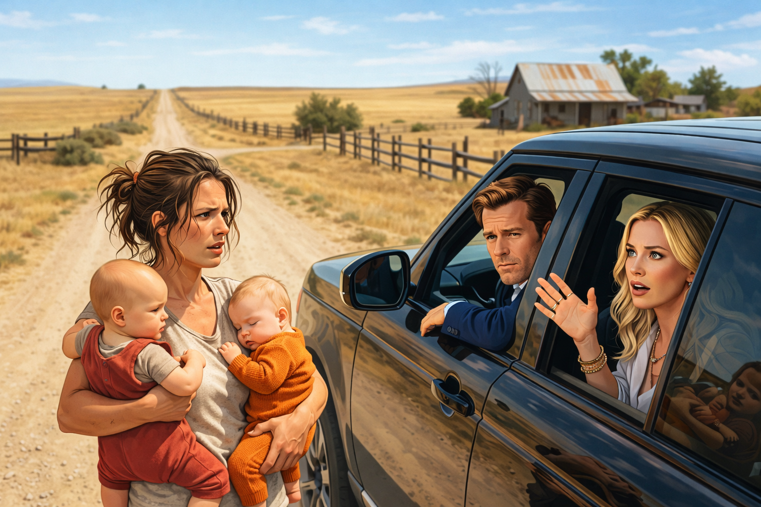 I did not answer at first. My eyes remained fixed on Maren’s retreating figure, on the way she leaned slightly to compensate for the babies’ weight, on the bag knocking against her leg, on the calm deliberate dignity with which she ignored the money in the dirt. Every instinct in me was yelling that none of this made sense, yet at the same time a terrible private arithmetic had already begun.