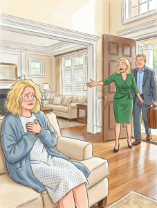 When I finally texted her, the message came out fragmented: Can you help? Trouble breathing. Alone. She was at my door in less than ten minutes. I heard her knocking, then calling my name, then the sharp shift in her voice when she saw me trying to crawl toward the entryway. She let herself in through the garage code my mother had once given her for deliveries.