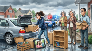 While the deputies supervised the move-out, the locksmith changed the front and back locks. Sarah walked the property with me, photographing the damage: cracked picture frames, a dented porch rail, books left damp in the grass. My mother made one last attempt as they loaded the truck. “You’re really doing this to your own family?” she asked. I looked at my things thrown across the lawn and then back at her. “No,” I said. “You did this to your own family. I’m just ending it.”