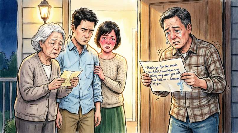 For months I left food at my neighbor’s door without knowing that that plate was the only thing keeping him going. The day he died, his family knocked on my door with a note that broke me in two.